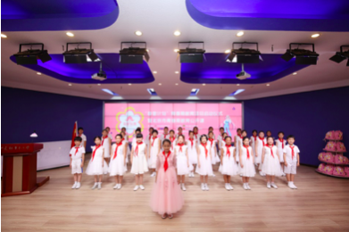 会议开始前,德扑之星集团为参会的中关村二小学生带来了礼物,孩子们在翻阅中如同找到知己一般,喜悦溢于言表,因为她们看到了可爱的爱心大使元七七同学。当嘹亮的歌声响起,学生代表们在国旗下歌唱、宣言,散发出阵阵青春朝气,也预示着发布会开始。